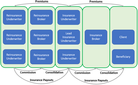 The figure above shows the basic insurance value chain that has existed for hundreds of years: